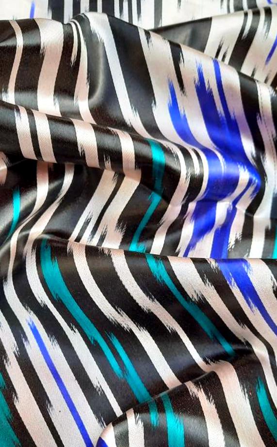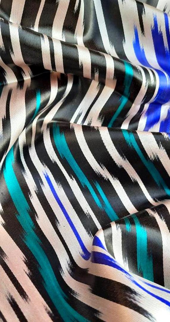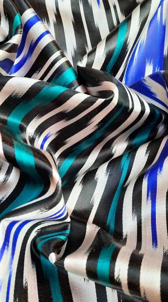 A piece of 3 meters Uzbek handmade 100% silk vintage ikat fabric "Khan-atlas".Handwoven,Hand-dyed,natural silk organic ikat .