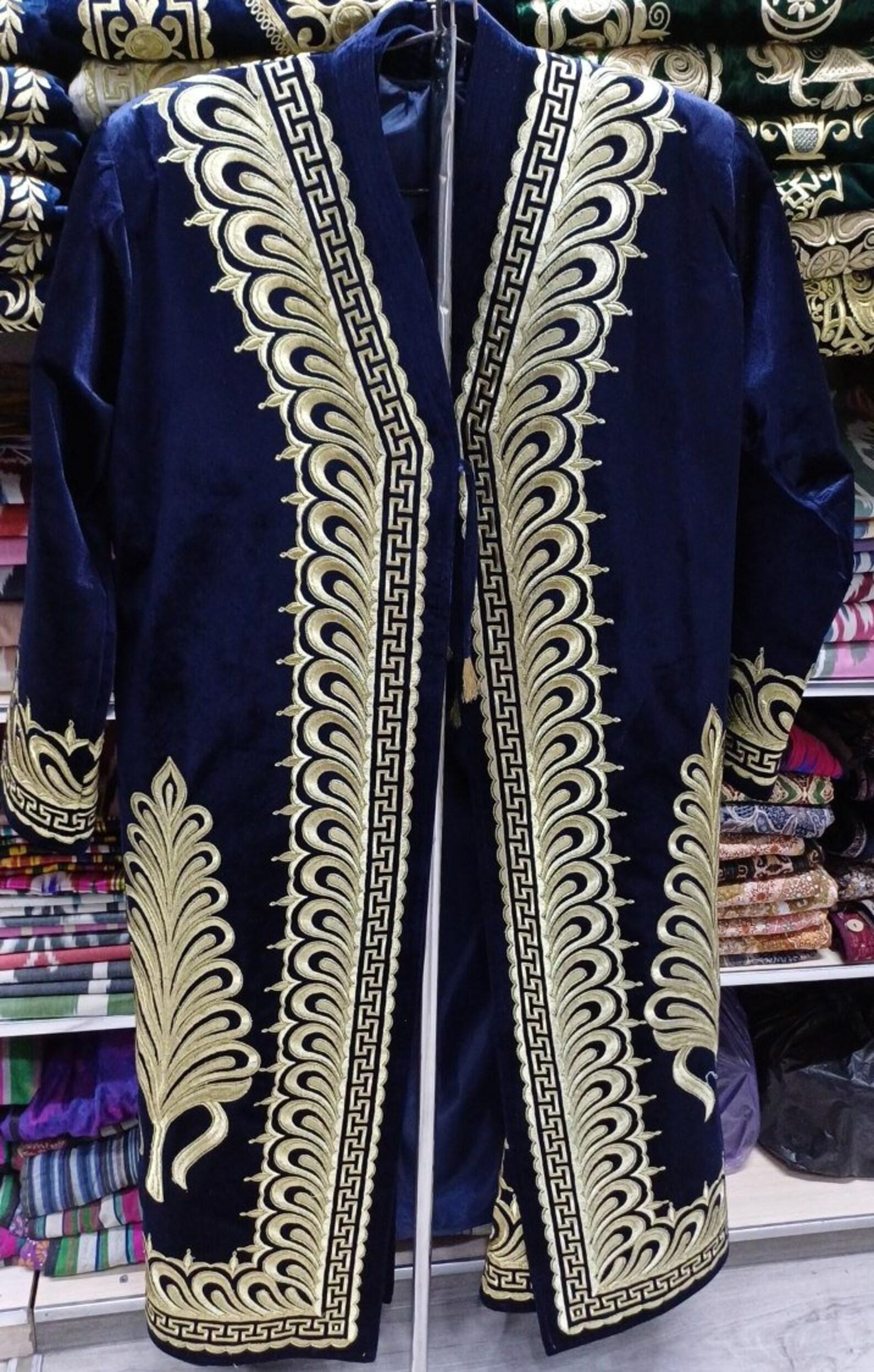 Golden embroidered chapan, uzbek robe, uzbek coat, caftan, jacket