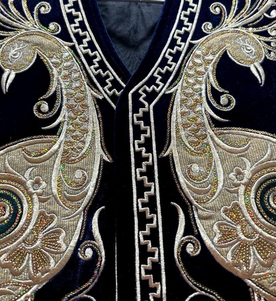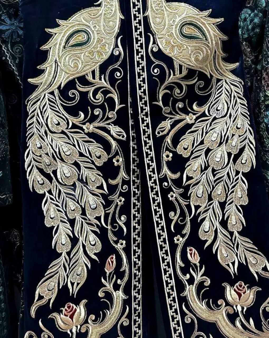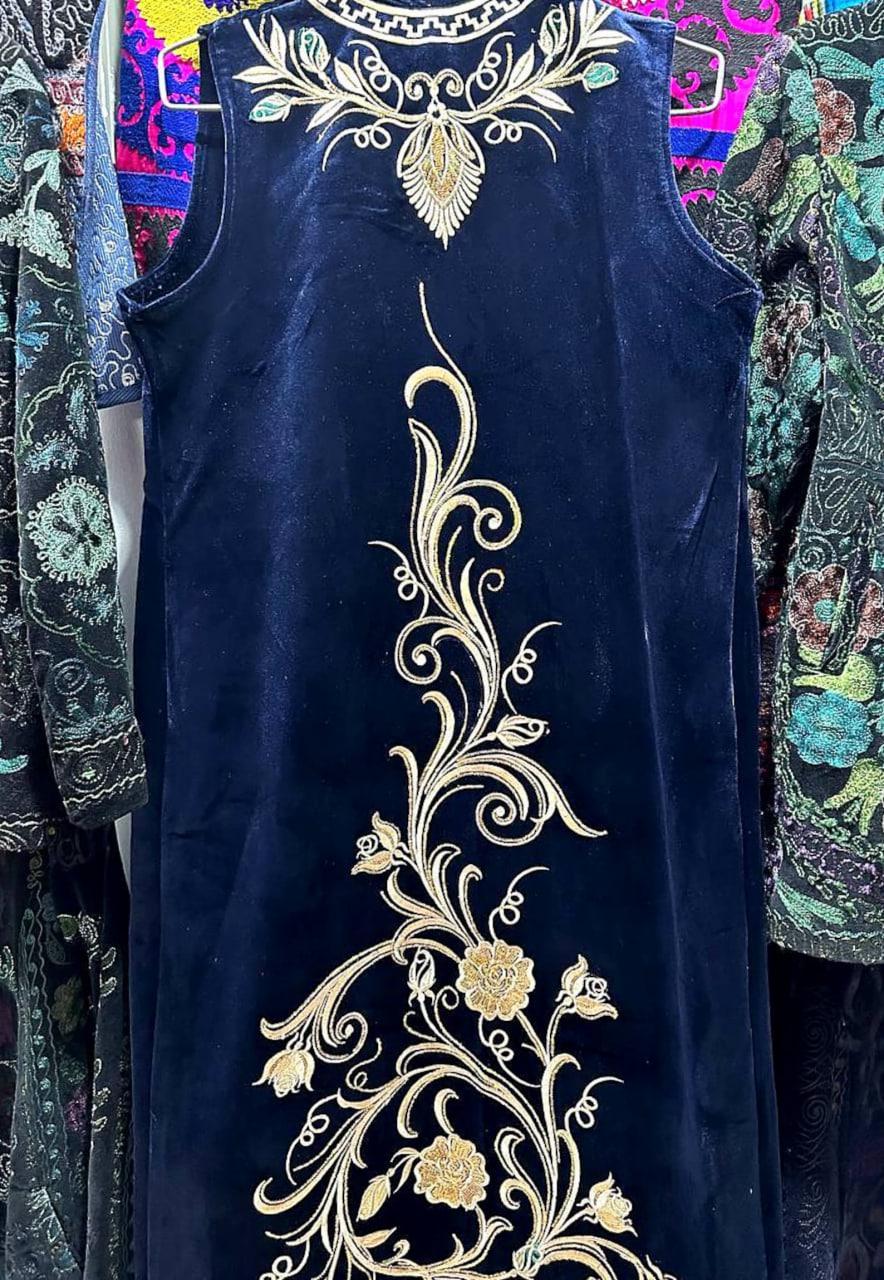 Traditional Uzbek Silk Velvet Golden embroidered chapan, uzbek robe, uzbek coat, caftan, jacket,sleeveless jacket.
