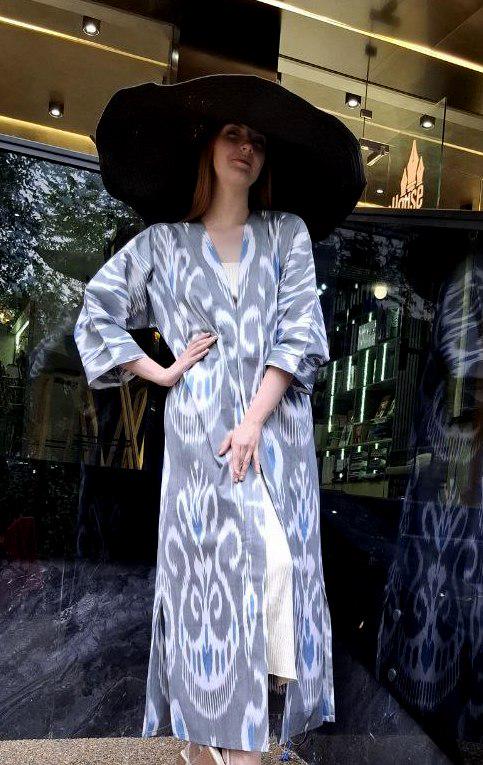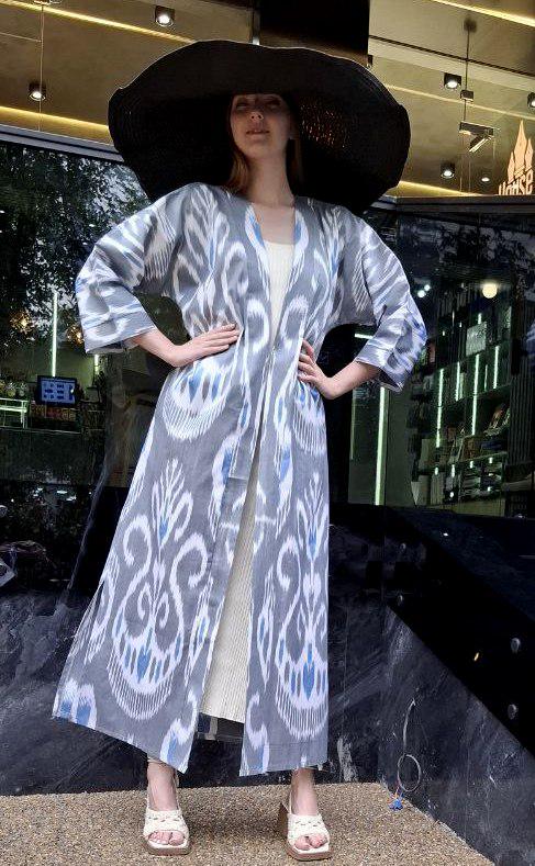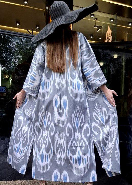 Chapan 30% silk,70%cotton made from handwoven ikat which are unique (the technology of ikat manufacturing is quite complicated and includes 37 steps) .