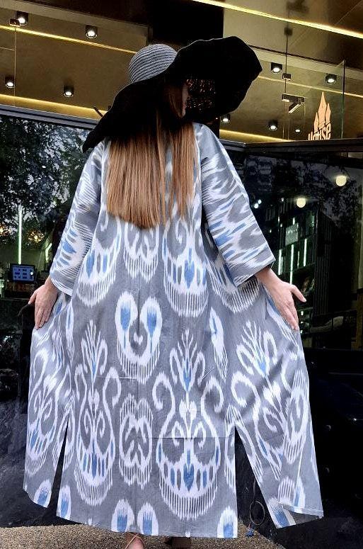 Handwoven Ikat Chapan,coat,robe, jacket. Hand-dyed, hand loomed natural ikat from Uzbekistan.