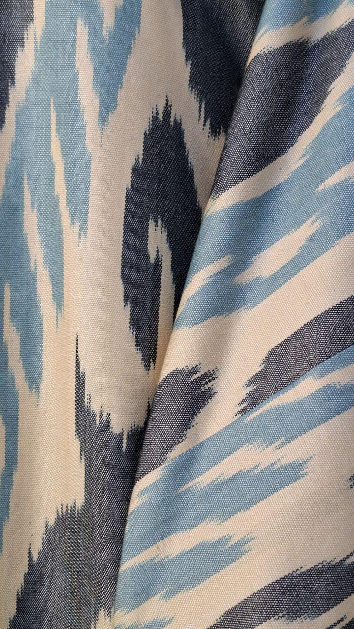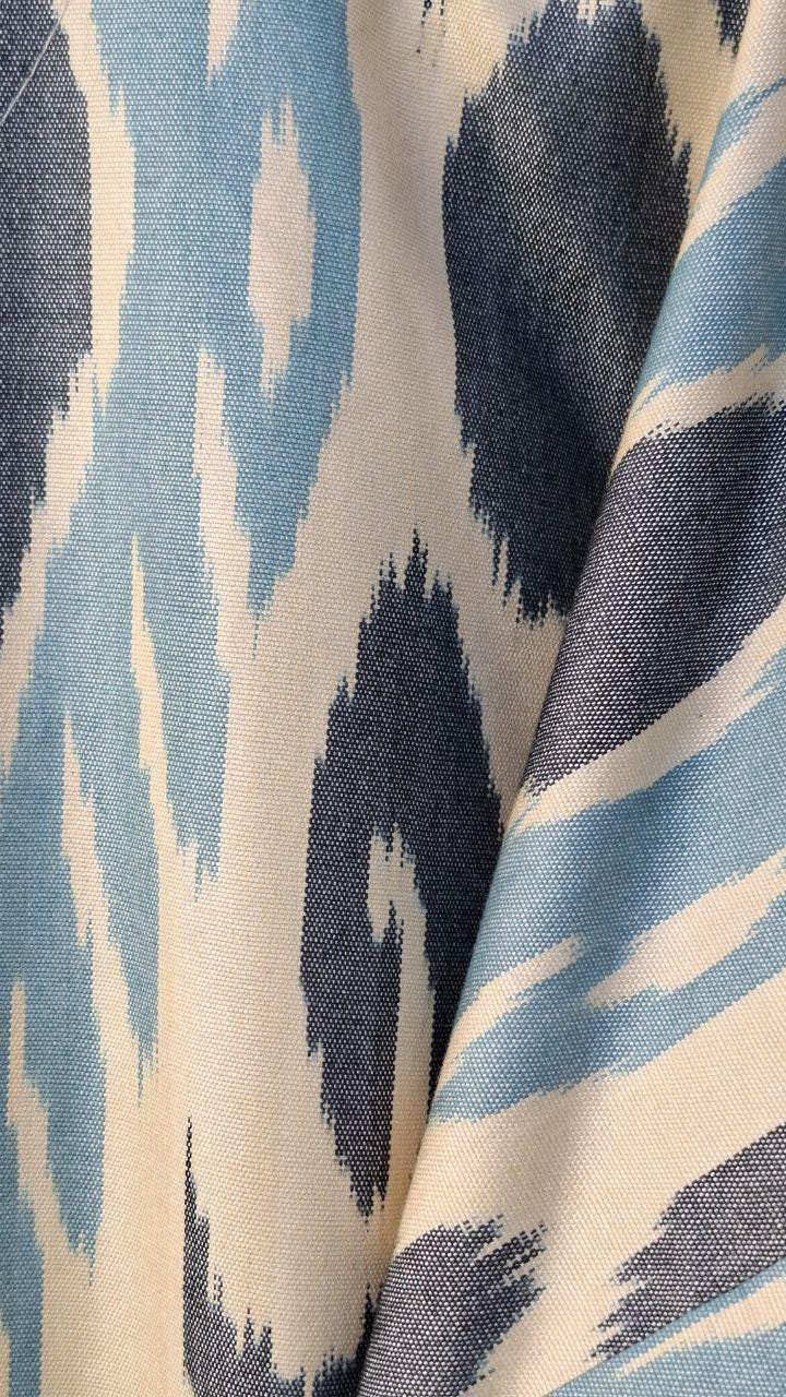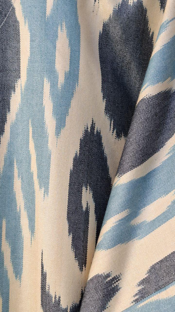 Uzbekistan is particularly noted for its ikat fabric. Ikat is a word of Indonesian origin, which refers to fabric that is patterned by binding the warp threads to resist dye before weaving. Many ancient legends surround the production of ikat in Central Asia. One legend states that in days of old one of the famous regional khans had a very beautiful daughter. The local w hand-made silk-ikat "Adras" chapaneaver fell in love with the khan's daughter but was told the daughter was betrothed to someone else. The weaver was so upset and beseeched the khan to change his mind about him marrying the khan's daughter. The khan told the weaver that if he could come-up with a special cloth to match those imported from China and India, the khan would reconsider giving the weaver his daughter's hand in marriage. The weaver was upset at the khan's teasing and spent the night by the side of a small lake crying. While spending the night in the open and on the shore of the lake the weaver couldn't help but notice how the full moon on the calm waters created a blurred reflection of the trees, fruit and other items along the shore. While sitting there watching the changing shapes reflect themselves off of the water, the weaver saw the design of a special cloth he could create from the reflections. The next day the weaver worked all day dyeing and weaving until he created a representation of the reflections seen in the water. The cloth was presented to the khan, who liked it so much that he allowed his beautiful daughter to marry the weaver. The technology of ikat manufacturing is quite complicated and includes 37 steps.