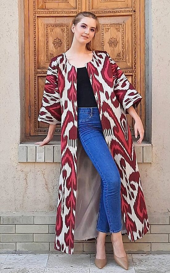 Handwoven Ikat Chapan,coat,robe, jacket. Hand-dyed, hand loomed natural ikat from Uzbekistan.