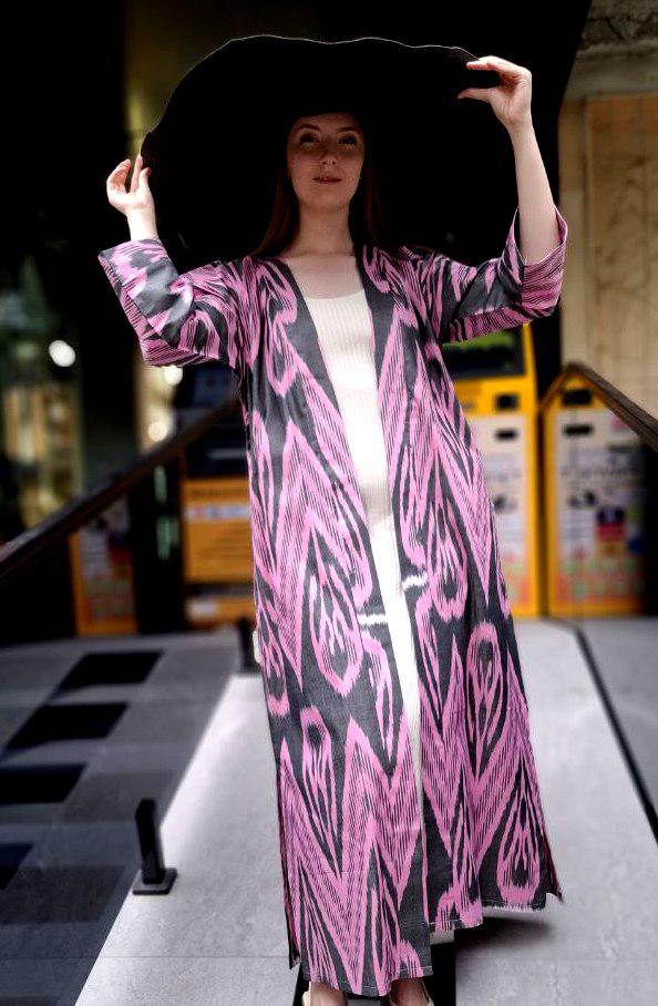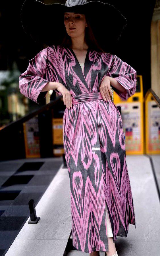 Chapan 30% silk,70%cotton made from handwoven ikat which are unique (the technology of ikat manufacturing is quite complicated and includes 37 steps) .