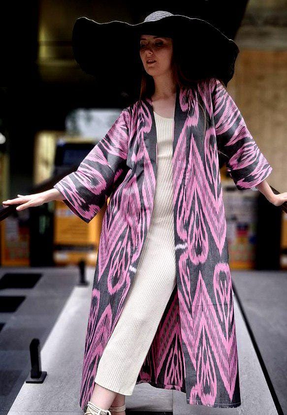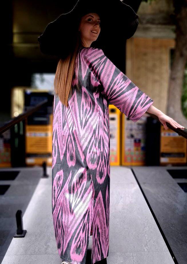Handwoven Ikat Chapan,coat,robe, jacket. Hand-dyed, hand loomed natural ikat from Uzbekistan.