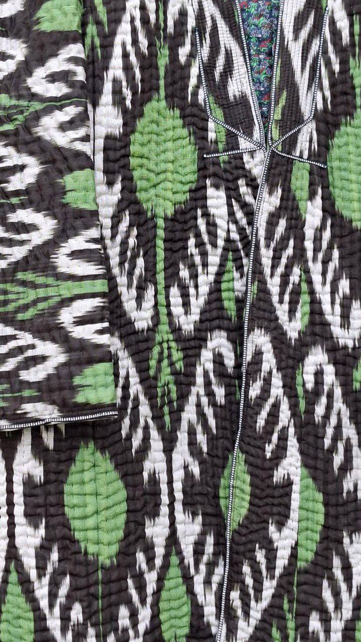 Uzbek handmade warm quilted chapan, coat, robe from ikat fabric. Unisex.