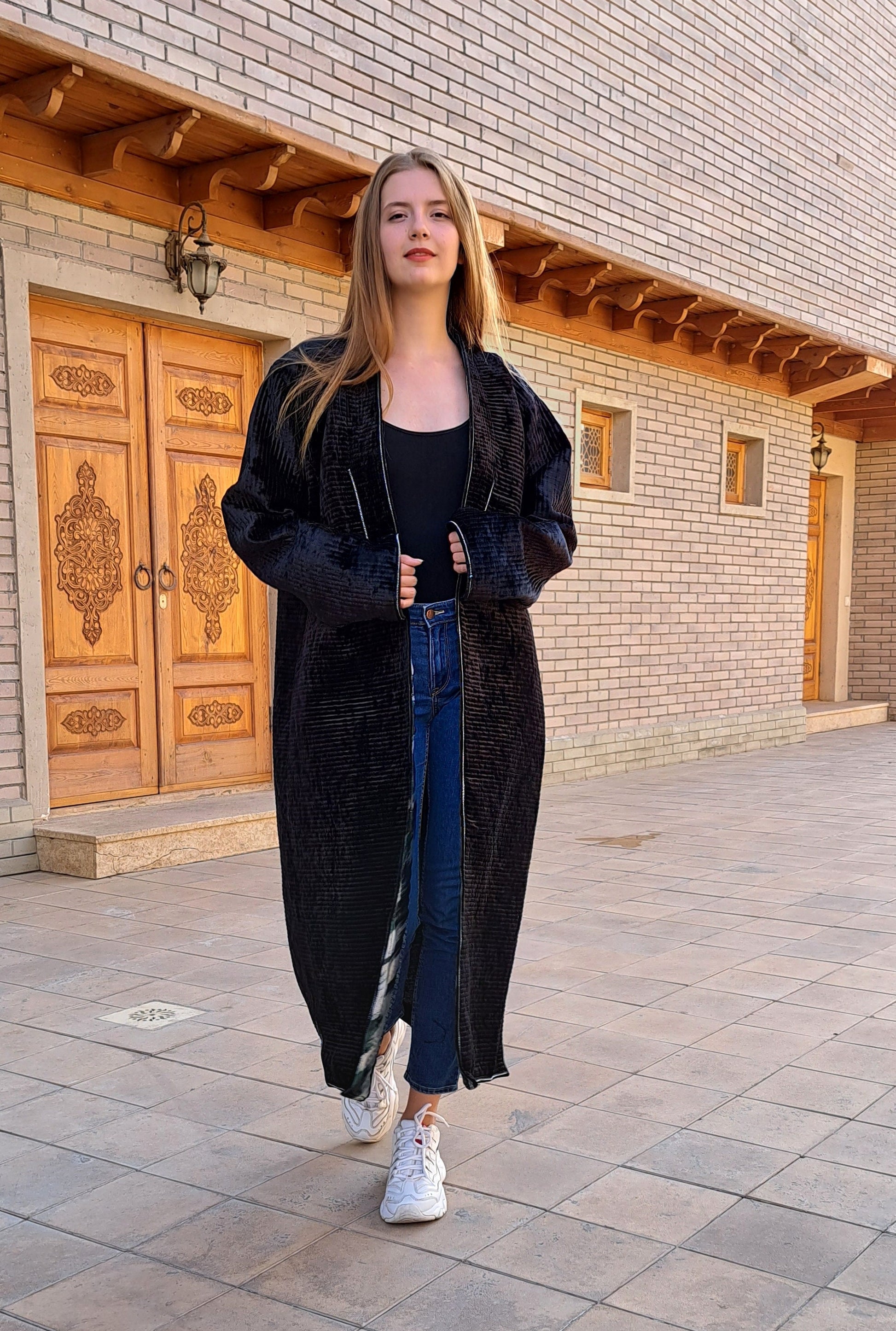 Traditional Uzbek Silk Velvet Chapan .Unisex.Size free for S/XXL